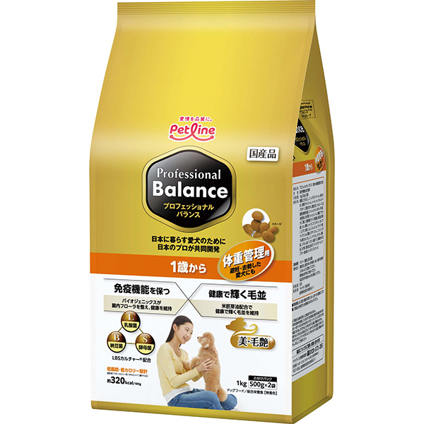 ・肥満傾向の愛犬の適正体重に配慮!・食事の満足感維持に繊維源強化・避妊・去勢をした愛犬の健康維持に配慮