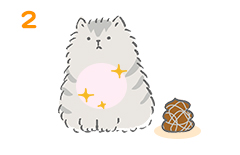 ✔ブラッシングをする ✔ボディタオルなどで拭いて、体毛表面に浮いた抜け毛を取る ✔日頃から毛玉ケアのフードなどを取り入れる