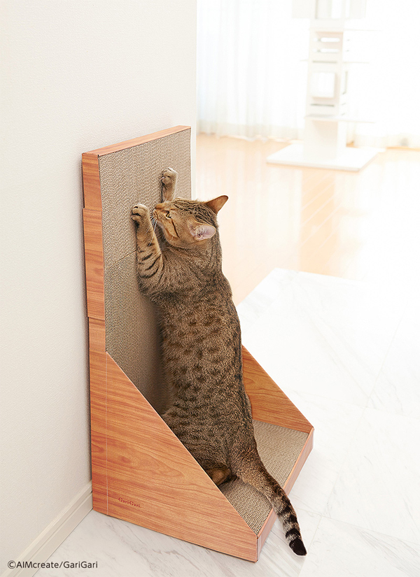 愛猫が立ったままガリガリできるタイプ。とぎカスが飛び散りにくい構造。底面滑り止めシールと全面補強板付きです。
