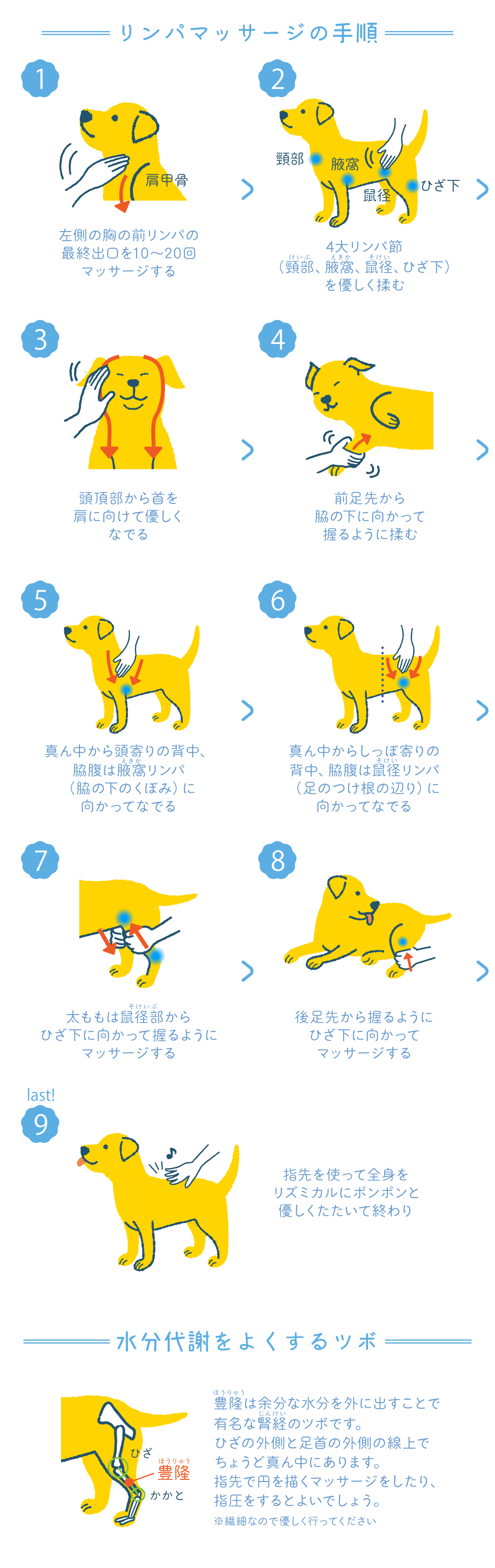 ワンちゃんも人間と同じように、リンパの流れが滞ると浮腫みなどにつながります。