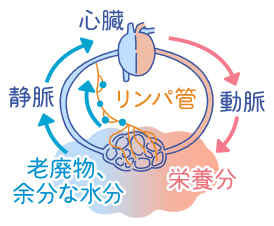 リンパ管は全身に分布し、静脈とともに老廃物や余分な水分の回収をしてくれます。また、病原体をリンパ節でせき止め、カラダを守ってくれています。