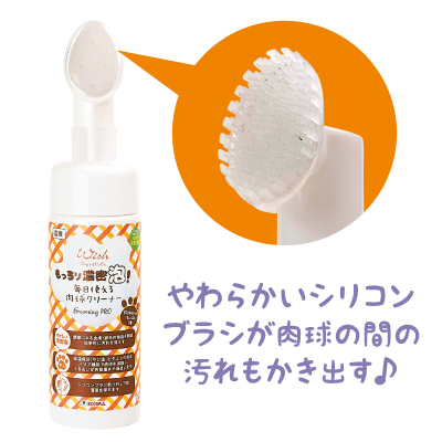 肉球クリーナーの泡を出して肉球をやさしく擦る