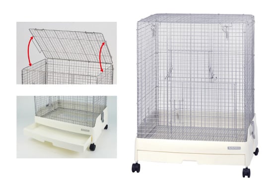 ケージの高い位置にハウスを付けてあげると、自然環境に近い状態になり