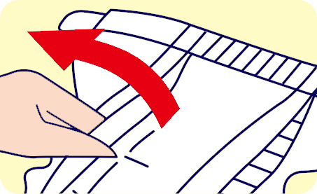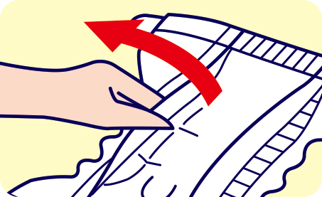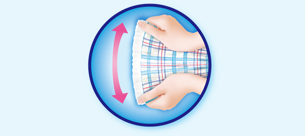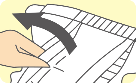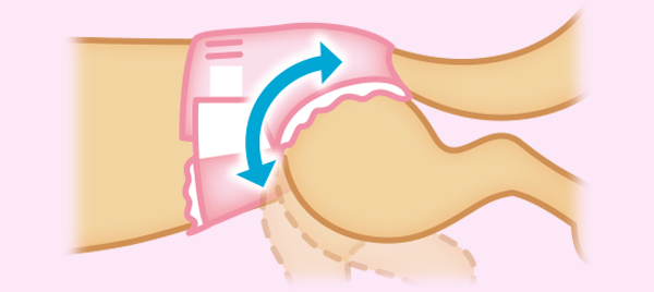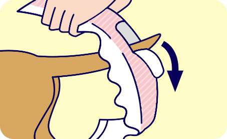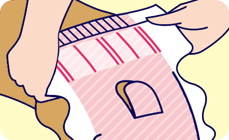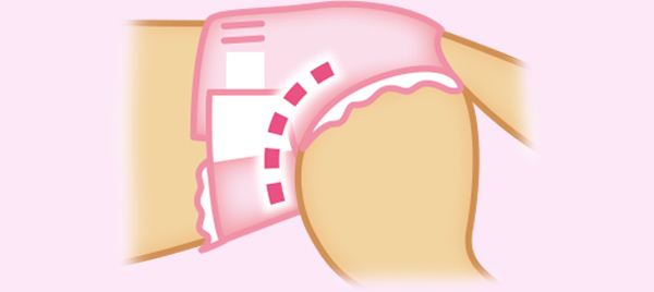 最後にギャザーを外側にだして、製品がしっかり性器を覆っていることを確認してください。