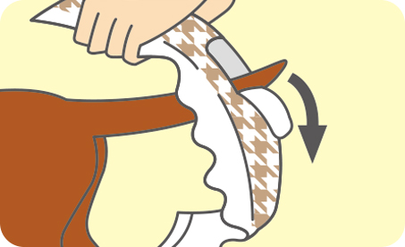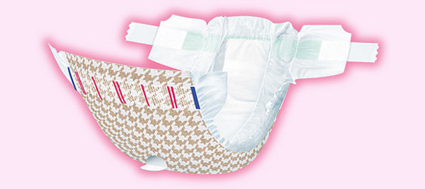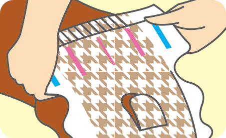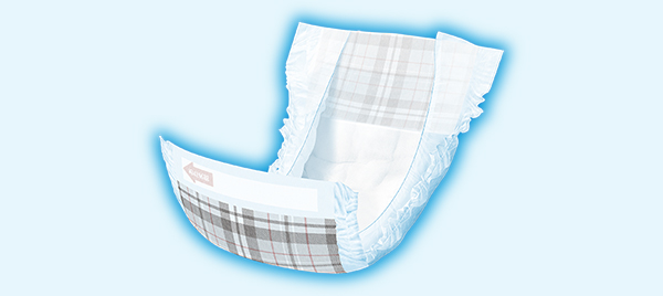 マナーウェアが、からだにやさしくフィットするように、テープ位置を調節します。テープは何度でもつけ直しができます。
