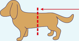 適応胴まわりの位置適応胴まわりは、前足付け根と後ろ足付け根との中間部分の胴まわりです。
